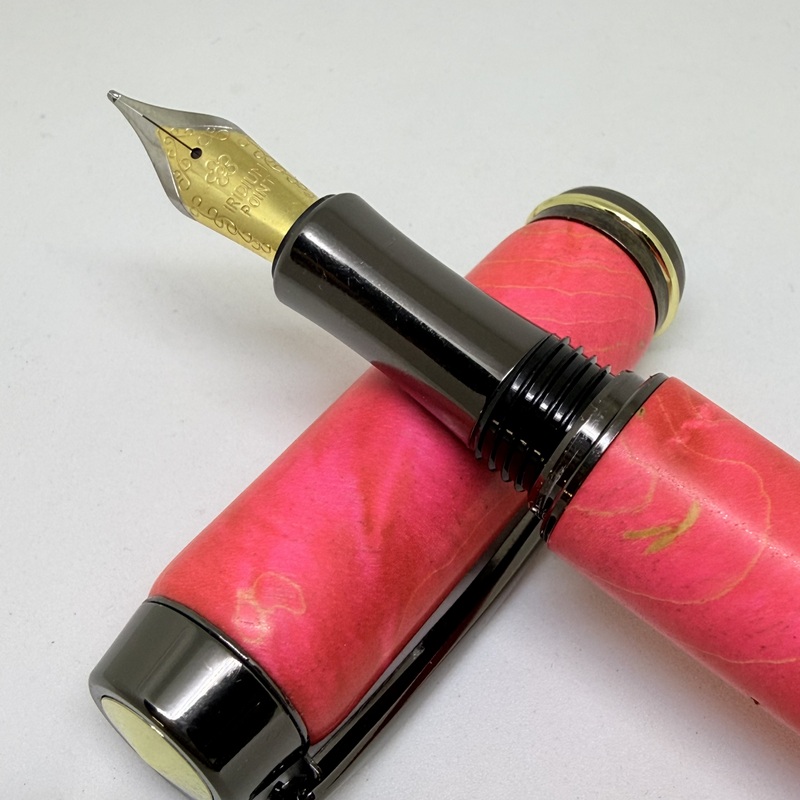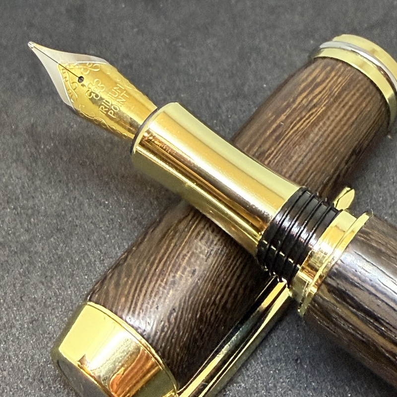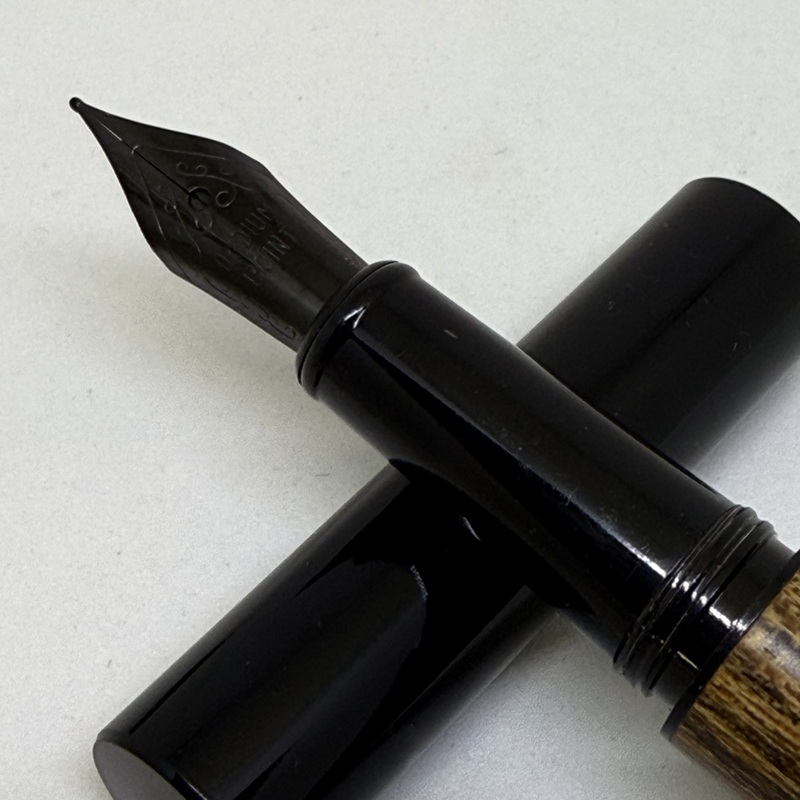 木目の美しいメイプル材に樹脂を含浸させ、気温や湿度の影響を受けにくく経年劣化に強い作りの万年筆です。軸径は15mmを超える大型サイズ、補強に真鍮パイプを通しておりますので重量感があります。ペン先は高級ステンレス製で中細字相当となります。コンバーター付きカートリッジインクはヨーロッパ標準型が使用できます。