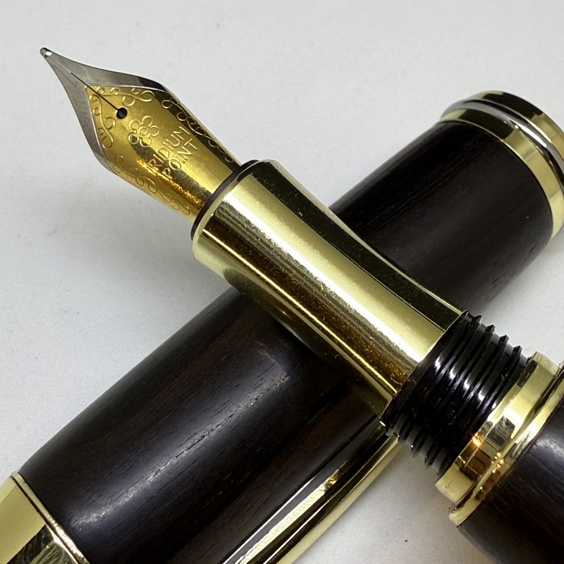 希少木材、縞黒檀(シマコクタン)を切削加工し軸に採用した万年筆です。