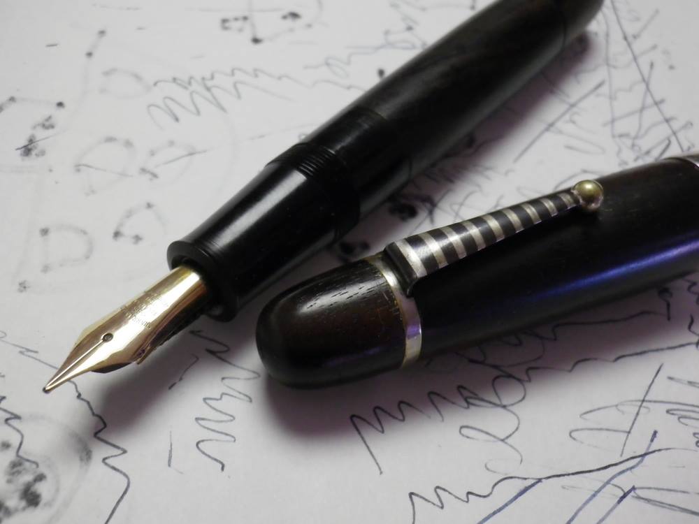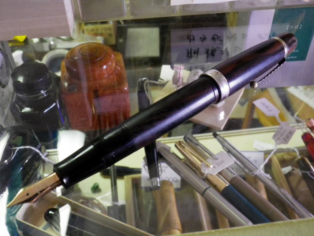 EBONY&SILVER 投稿日時: 2013-09-12 投稿者: 綾音川窪 EBONY&SILVER10数年前に作成した黒檀軸がメンテナンスで持ち込まれました!軸径15mmの大型モデルで、当時習得したばかりのロウ付けで仕上げた銀無垢リング、金属象嵌クリップ、デザインはオーソドックスですが凝った品でした。