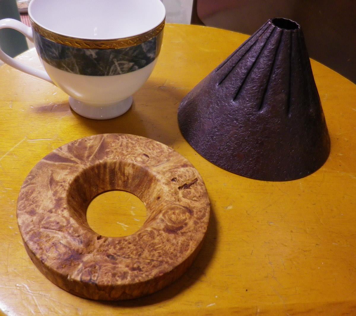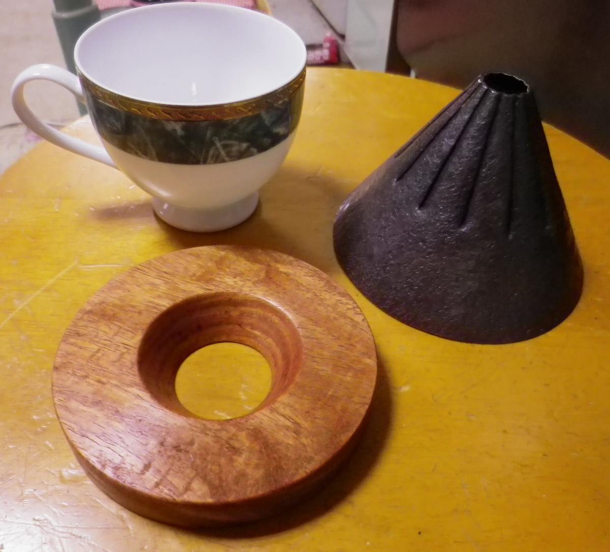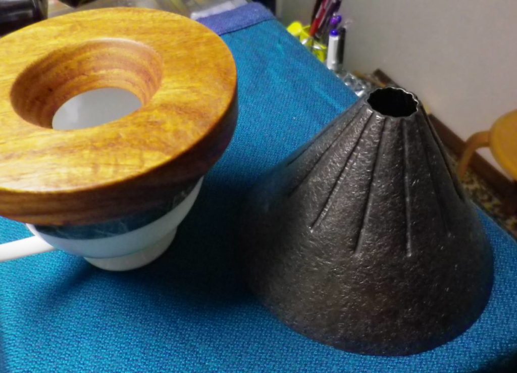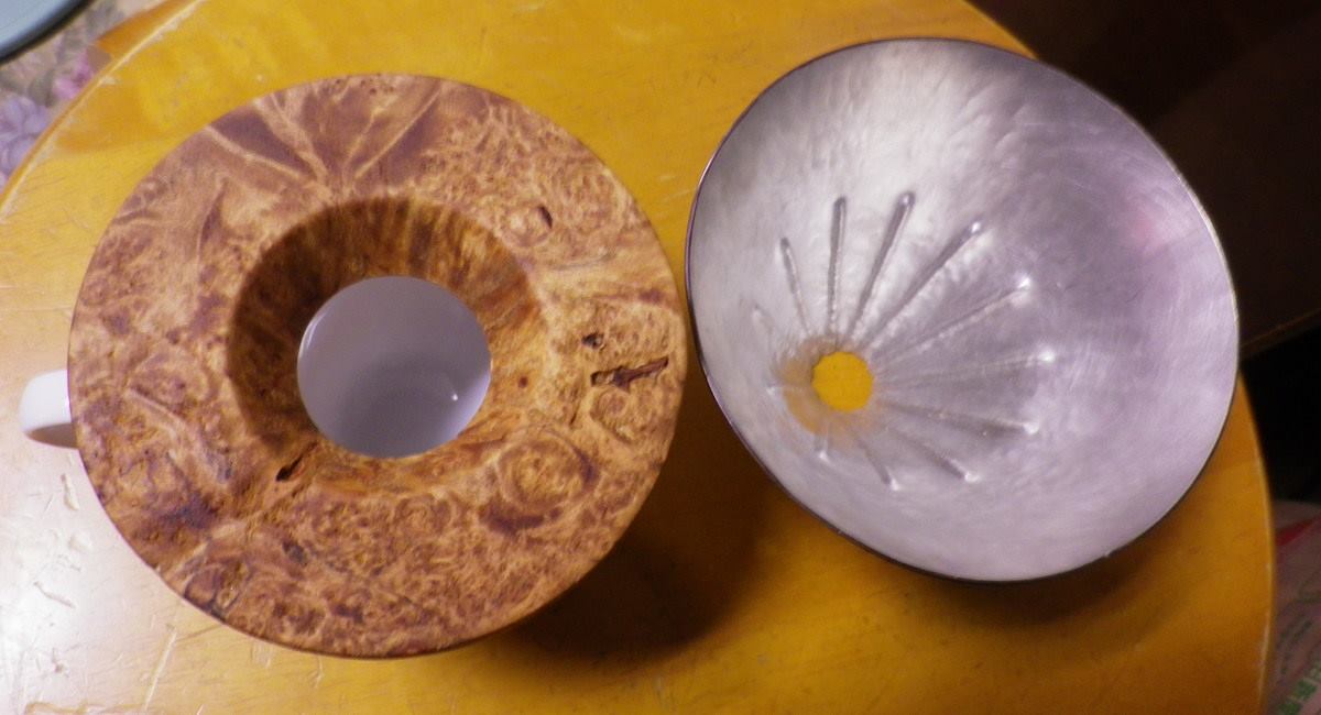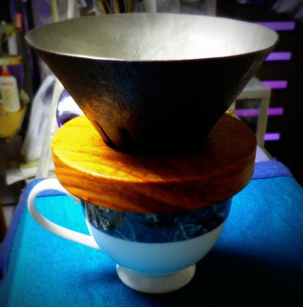 鍛金家の宮田琴さんとのコラボレート作品、コーヒードリッパーです。メイプルバール材。