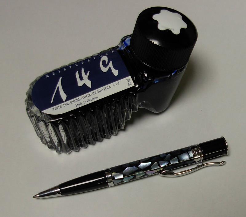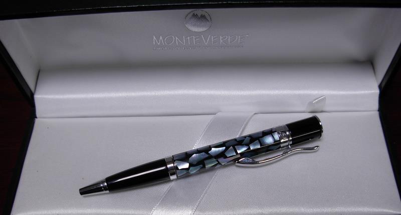モンテベルデ 投稿日時: 2011-12-17 投稿者: 綾音川窪 モンテベルデのミニ・ジュエリア。コンパクトなボールペン。 軸は螺鈿調で非常に美しい。トップにモンテベルデのロゴパターン。 モンブランのボトルインクと大きさを比べて見ました。 交換芯は4cタイプ。ゼブラやラミーは問題なく使えます。