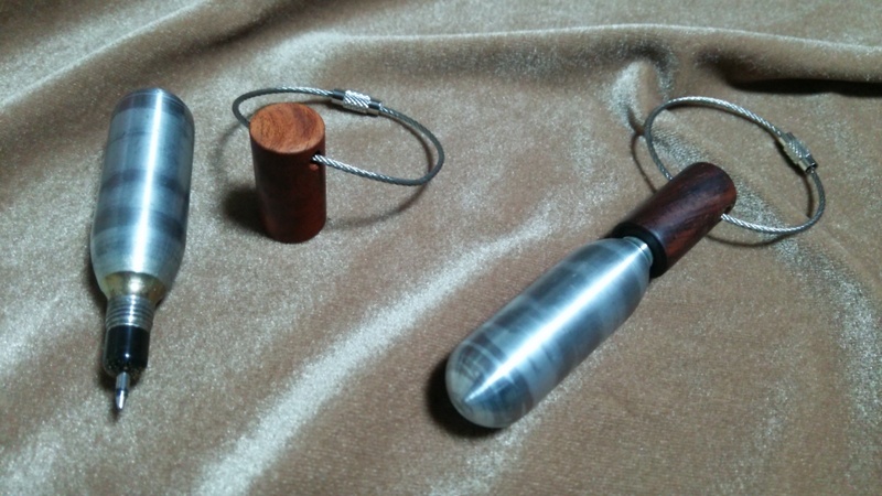 CO2ボールペン 投稿日時: 2006-08-08 投稿者: 川窪万年筆店 DSC_3150 炭酸ガスボンベを再利用してボールペンにしてみました。金属製なので表面はメッキ処理をしてます。経年変化で確実に変色してくると思われますが、それもまた質感として面白いと思います。キャップ部はエボナイト製でワイヤーの頑丈なストラップを取り付けてあります。お好みで任意の彫刻が可能です。定価¥3000(税別)完売しました材料ストックありますので注文頂ければ作成可能です。専用フォームからお願いします。
